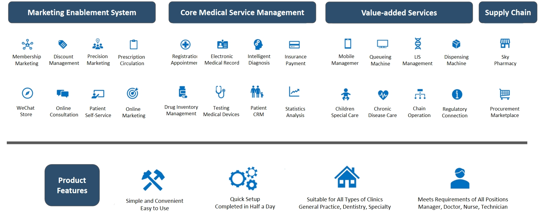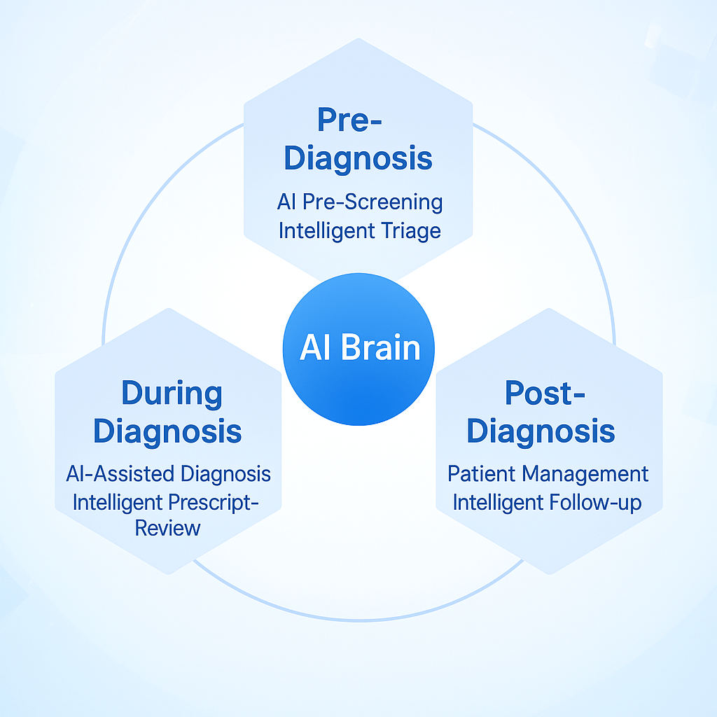 Unlike traditional HIS (Hospital Information System) providers focusing on stacking functionalities, ABC Cloud adopts a core philosophy of “AI-driven reconstruction of the entire primary healthcare chain.” By profoundly integrating clinical knowledge graphs, deep learning, and cloud collaboration technologies, ABC Cloud has built an intelligent, end-to-end healthcare ecosystem covering pre-diagnosis, diagnosis, and post-diagnosis stages.